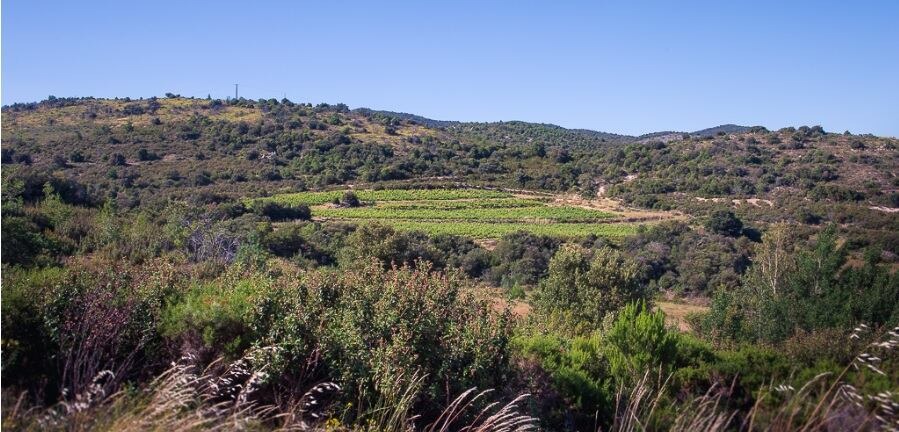 畑はエスタジェル周辺、標高350〜400mの花崗岩を主とする土壌に位置し、この標高と花崗岩質の土壌が、南仏の強い太陽の下でありながらも、ワインに「フレッシュさ」と「ミネラル感」をもたらします。彼は創業当初から、認証こそ取っていませんが、ビオディナミと有機農法の原則に従い、畑の生命力を高めることを最優先しています。