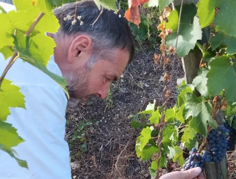 精肉店でも自然派ワインのセレクションを取り扱うようになり、やがて造り手たちとの交流の中で、自身でワインを造りたいという情熱が芽生えます。彼は、より自然に近い仕事としてワイン造りへの転身を決意し、2020年にドメーヌ・ドゥ・ラルブル・ブランで研修を開始。元レ・グラッピーユのマニュエル・デュヴォー氏といった地元の偉大な造り手たちから、自然なワイン造りを学びました。