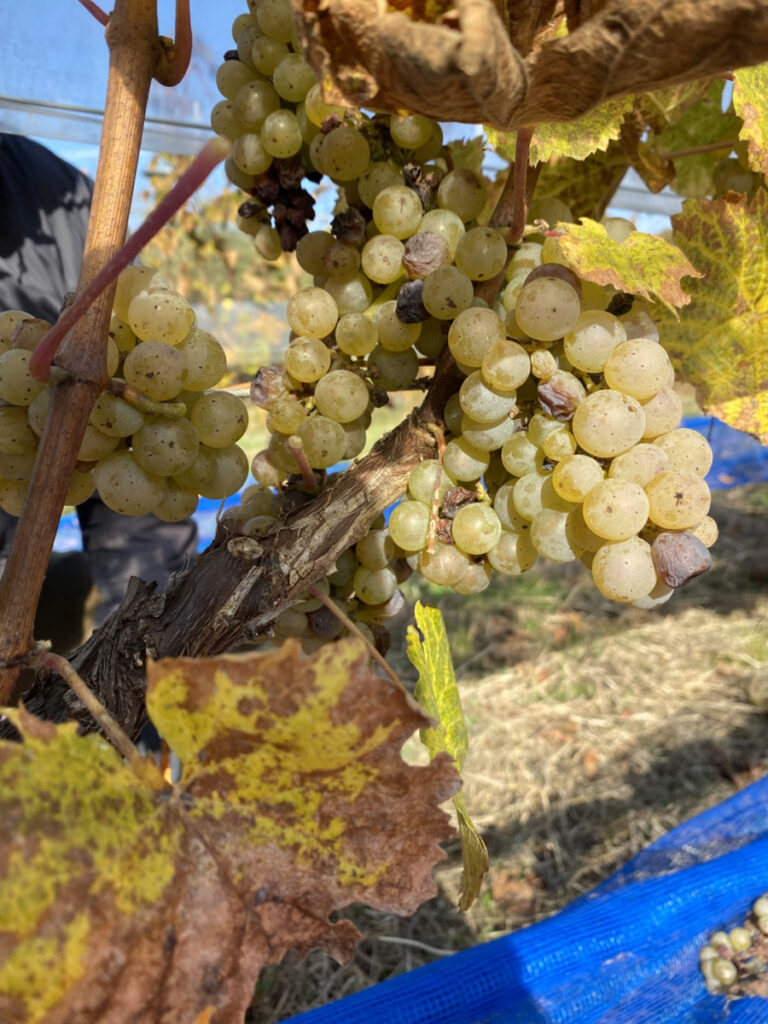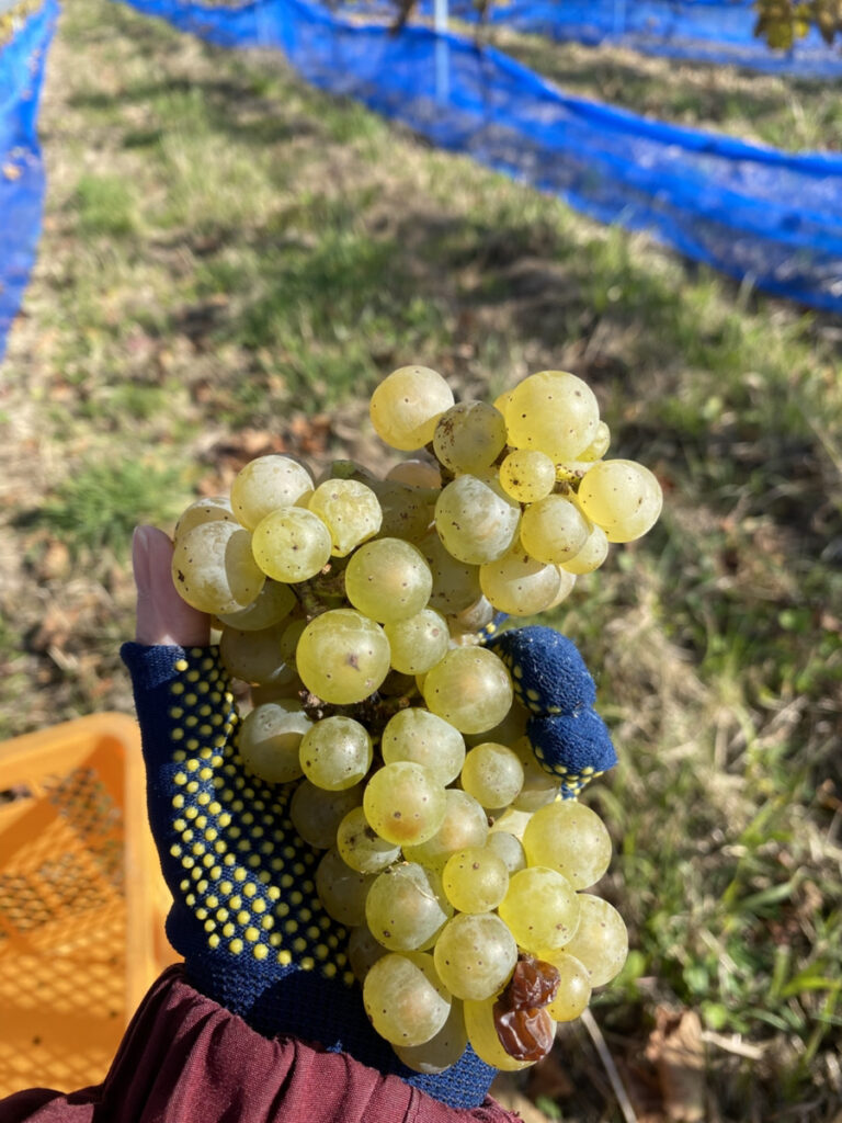 奥様が収穫した畑(リースリング、シャルドネ)を、